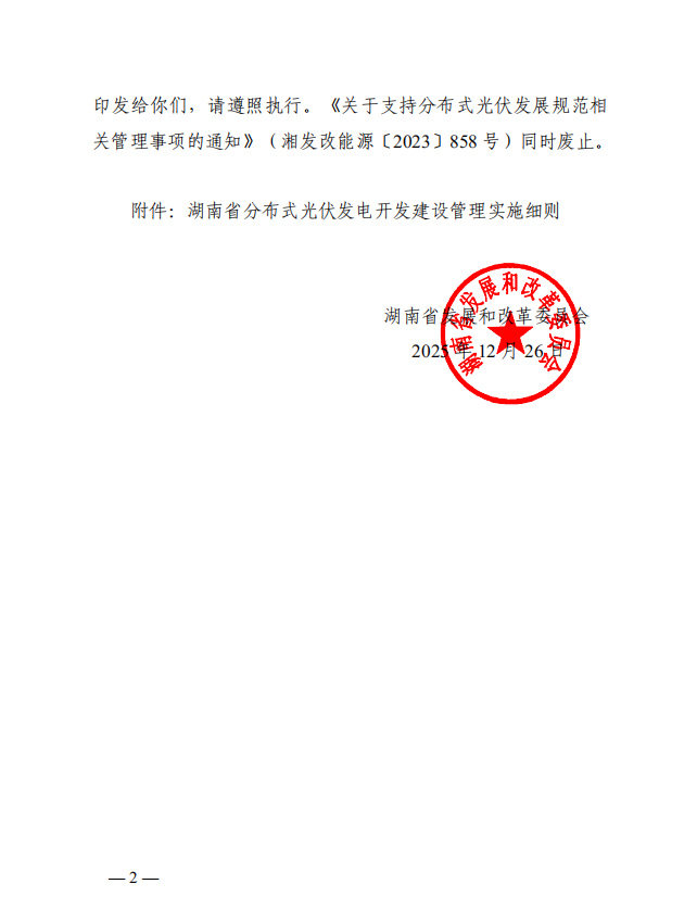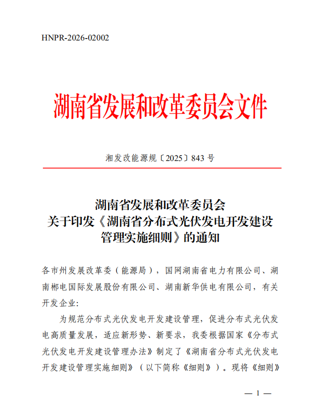 关于印发《湖南省分布式光伏发电开发建设管理实施细则》的通知